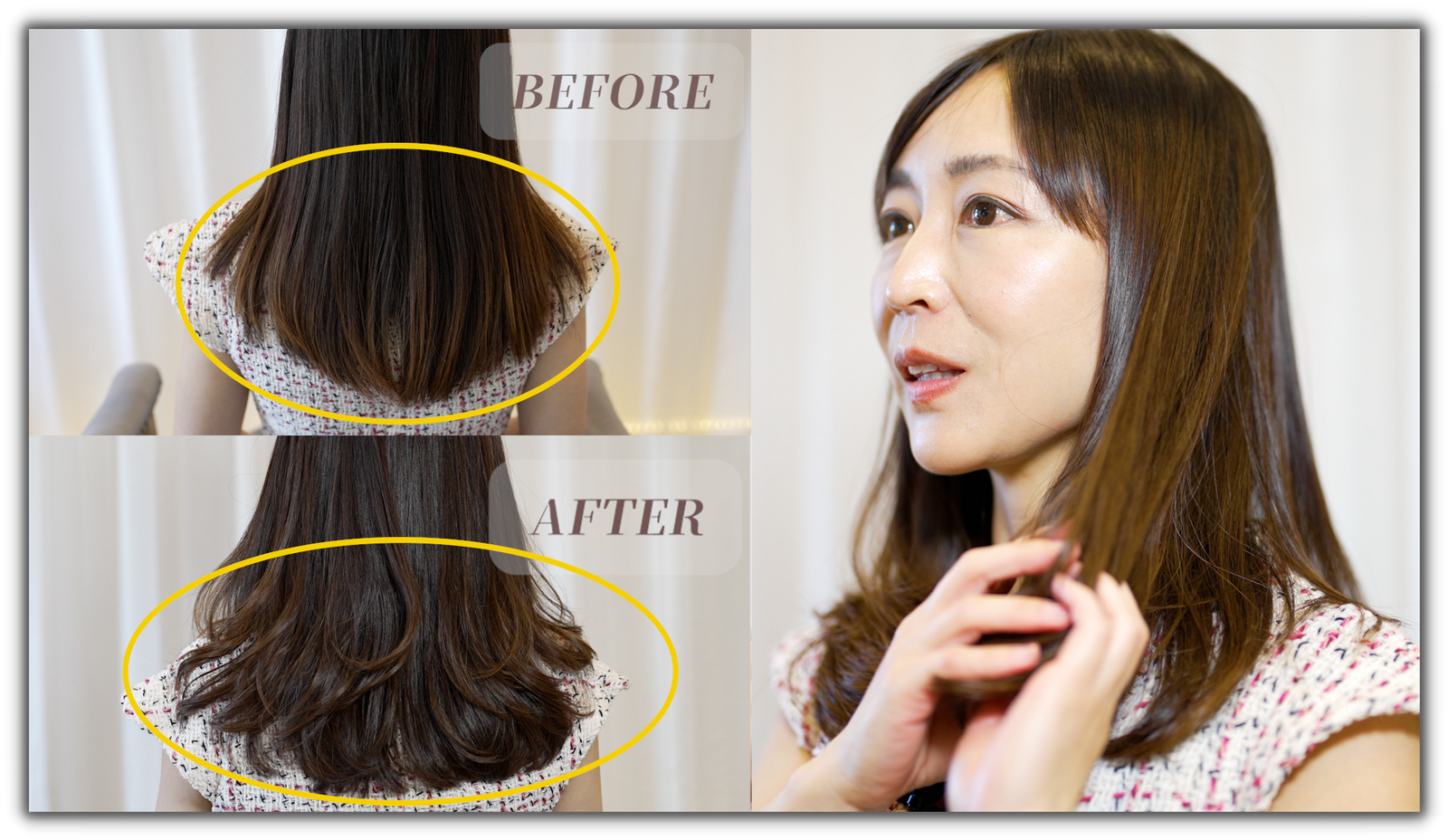 毛髪を修復しながら毛先の“コシ”を復活させ、ハンドドライ時に残るカールの量を綿密に計算することで実現する新しい技術。